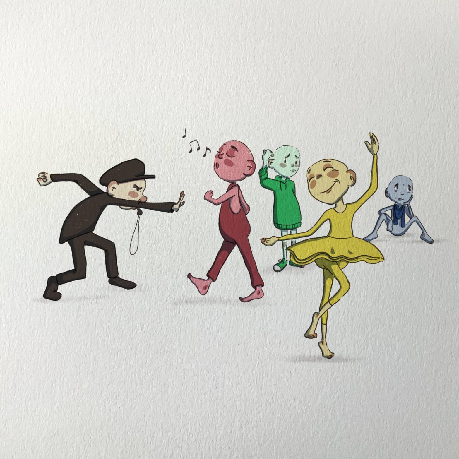 Di colpo, un rumore assordante, un movimento continuo di emozioni che vanno, vengono, fanno retromarcia, girano intorno. Volevo subito chiedere spiegazioni di questo nuovo modo di dirigere il traffico ma mi accorsi che il vigile non c’era più. Mi voltai e lo vidi là, vicino a Amicizia, Affetto, Dolore, Carisma, Fede che cercavano di sollevare Amore e allontanare Gelosia, che però non si voleva spostare. E ora tornava sconsolato. – Niente, è più forte di me. Quando ci sono io, Gelosia non ascolta nulla.-